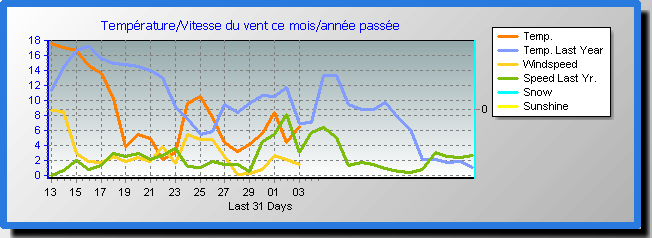 Rafale maximum = 20.4 km/h de 135°( SE) le 01 à 15:40