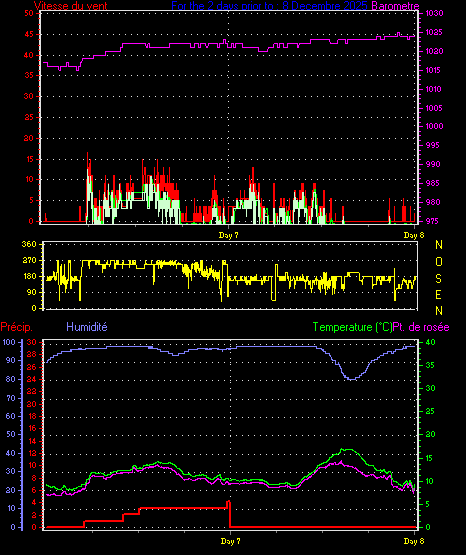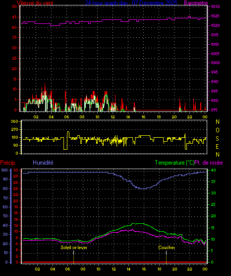 | Humidité | 98 %, Humidex 6.9°C | Barometre corrected to msl | 1024.0 hPa |