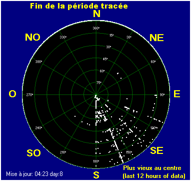 | Précipitation maximum par minute (dernière heure) | 0.0 mm/min | Précipitation maximum par heure (dernières 6 heures) | 0.0 mm/Heure |
